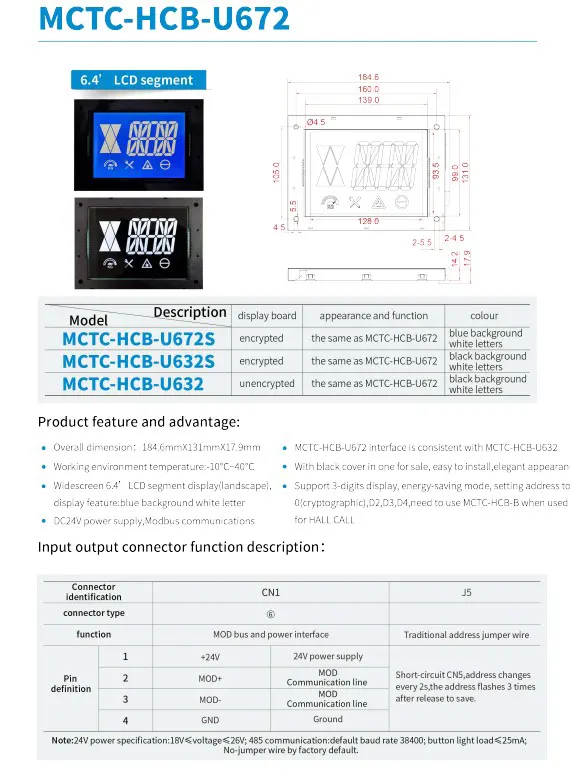 The MCTC-HCB-D672 6.4 Inch LCD Segment Elevator LOP PCB Board is made to show clear floor numbers, respond quickly, and communicate well with the landing panel in modern elevators. It helps maintain accurate passenger information and supports better daily elevator operation.