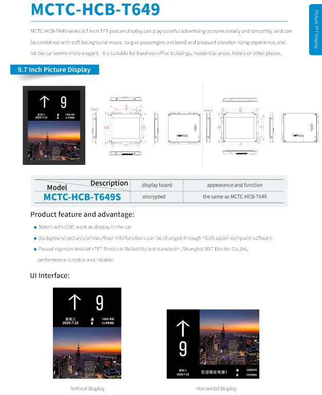 MCTC-HCB-T649 9.7 Inch COP Display Board